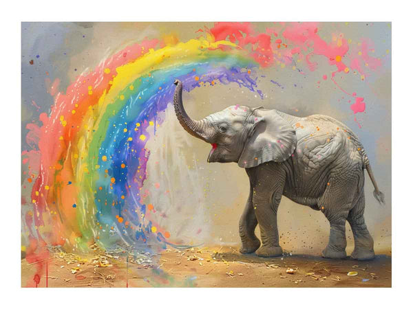 Baby Elephant Spraying Rainbow