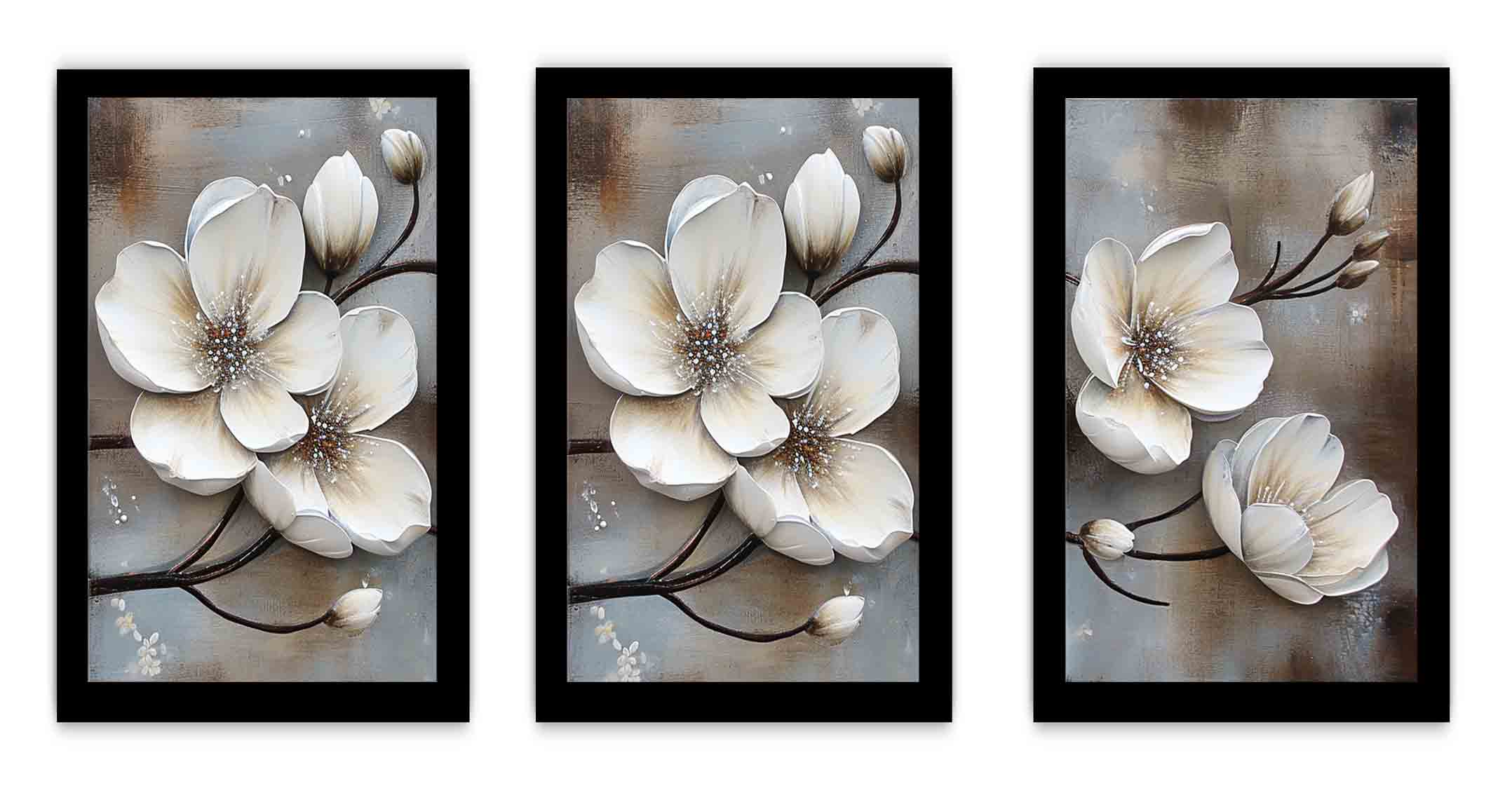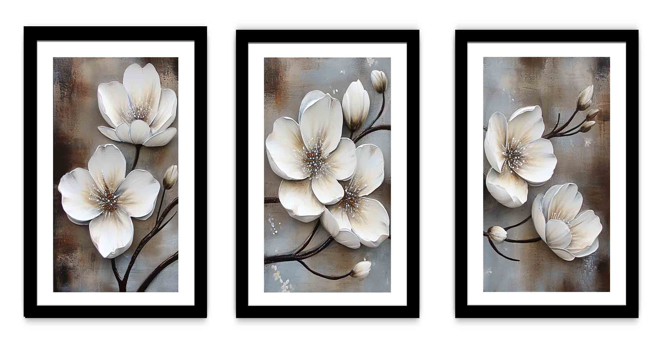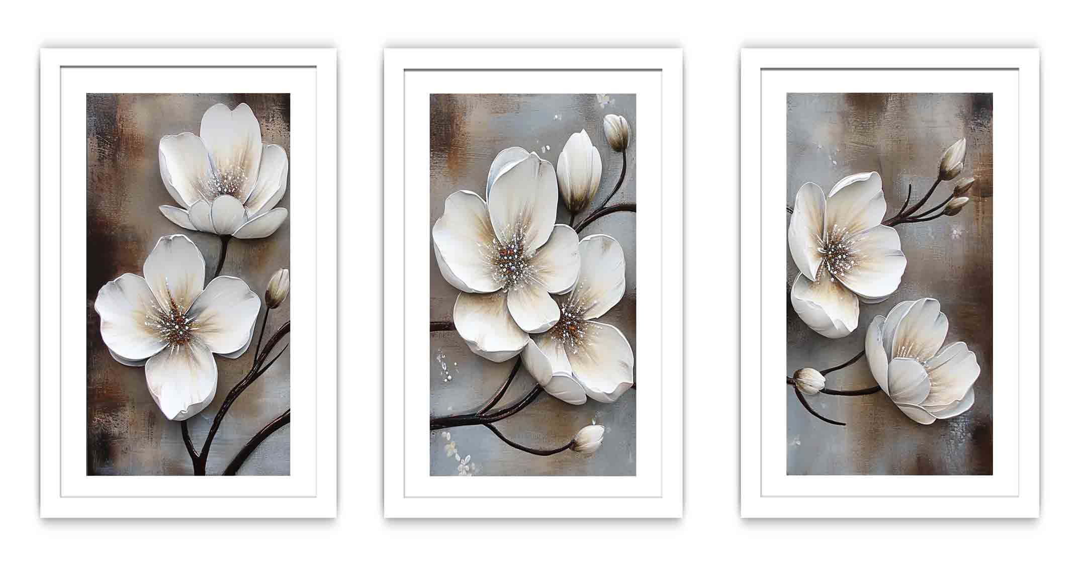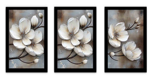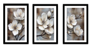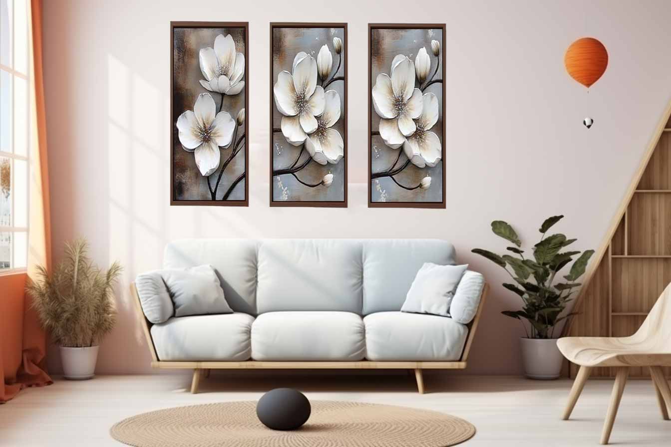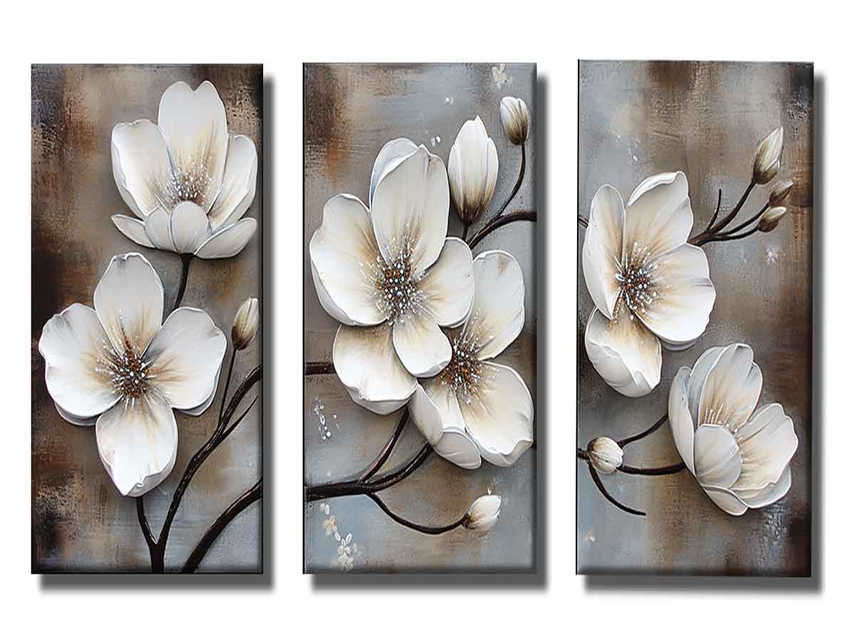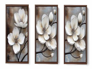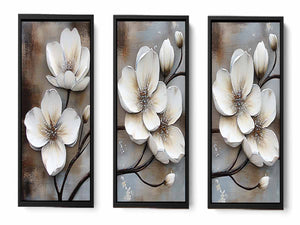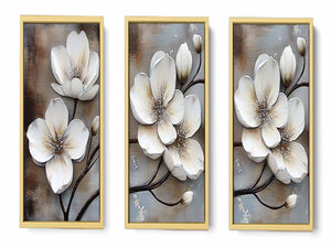 3 Panel White Flower Painting ( 3 Piece Set)