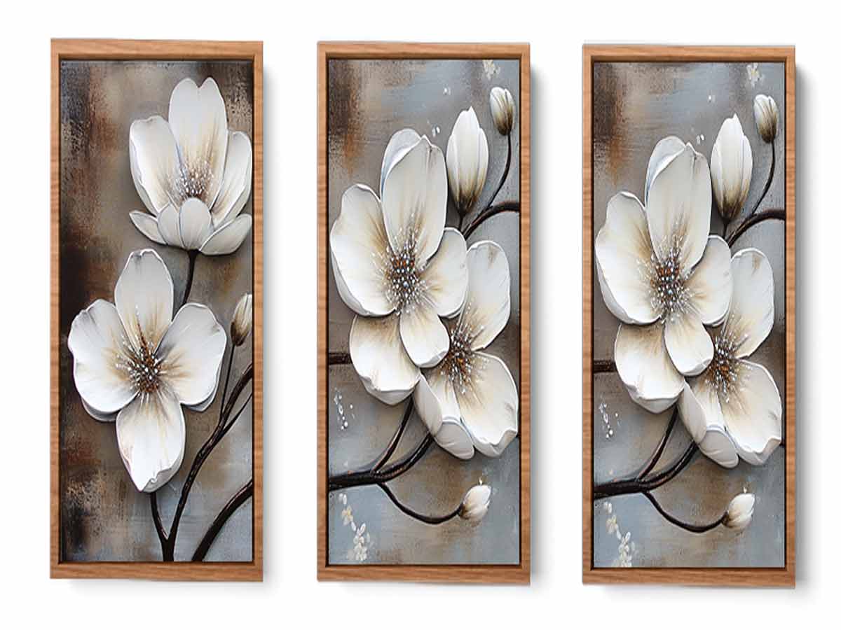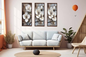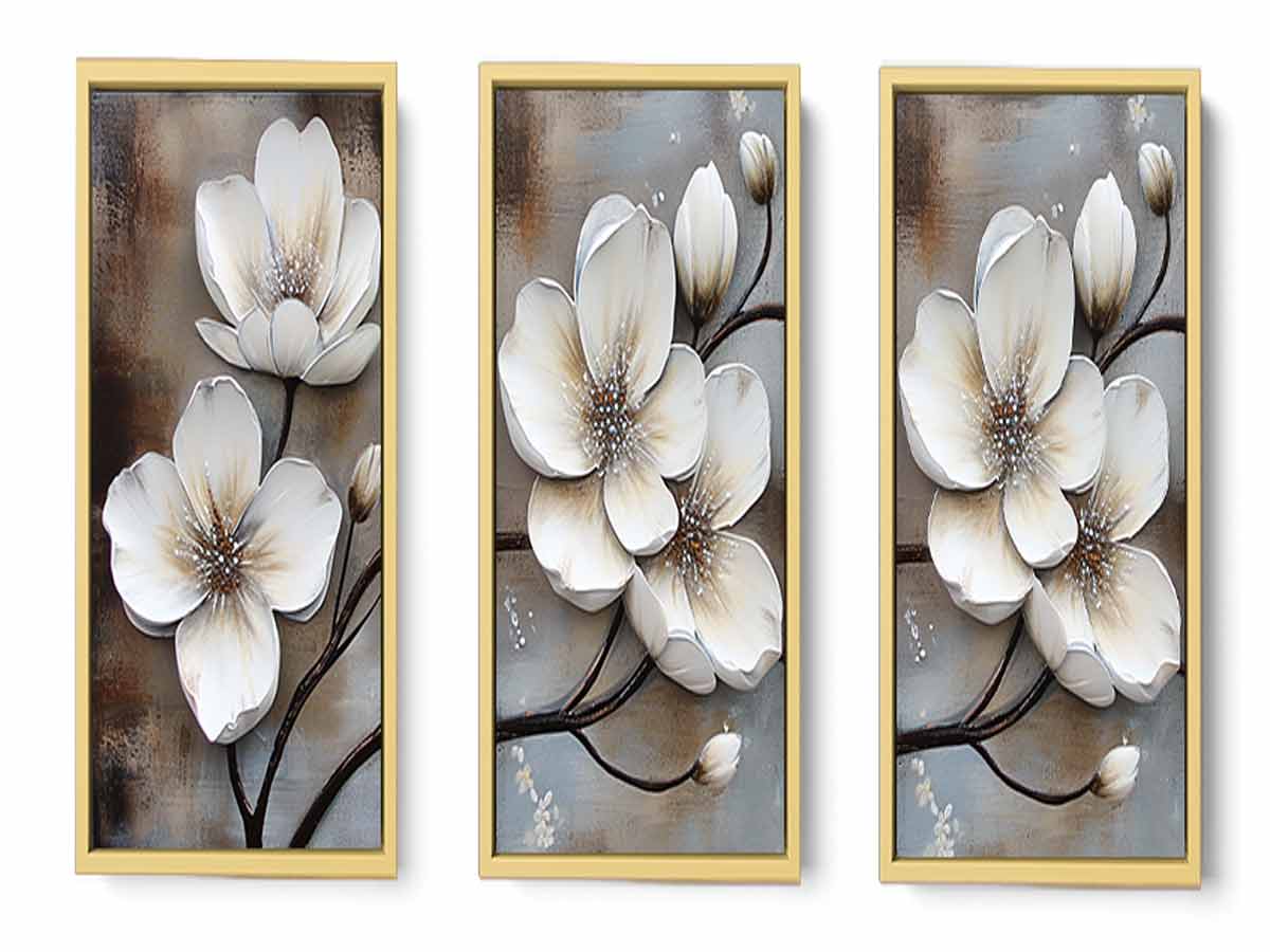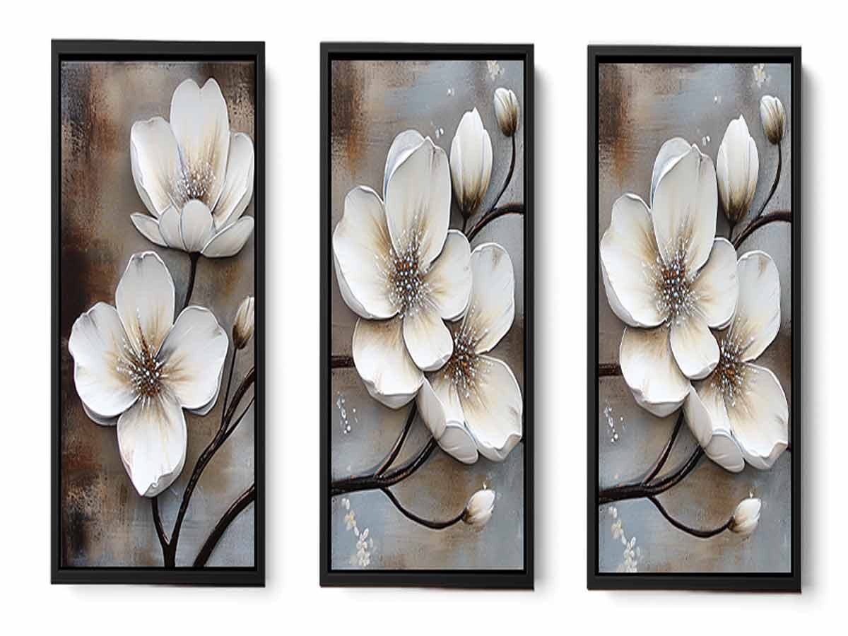 3 Panel White Flower Painting